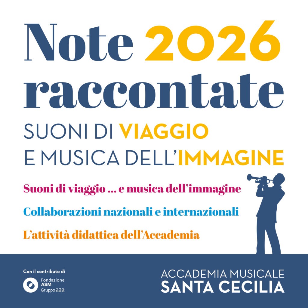 Note Raccontate 2025–2026 è una stagione di concerti e incontri a ingresso gratuito che unisce musica, racconto e divulgazione. Il programma si sviluppa lungo due filoni tematici che collegano tutti gli eventi – Suoni di viaggio e Musica dell’immagine – attraverso i quali musicisti e relatori guidano il pubblico in percorsi di ascolto accessibili e coinvolgenti, pensati per tutte le età. Un progetto culturale dell’Accademia Musicale S. Cecilia e della Fondazione Opera Sant’Alessandro. Con il contributo di Fondazione Opera S. Alessandro, Fondazione ASM Gruppo a2a. Clicca qui per accedere a tutte le informazioni.